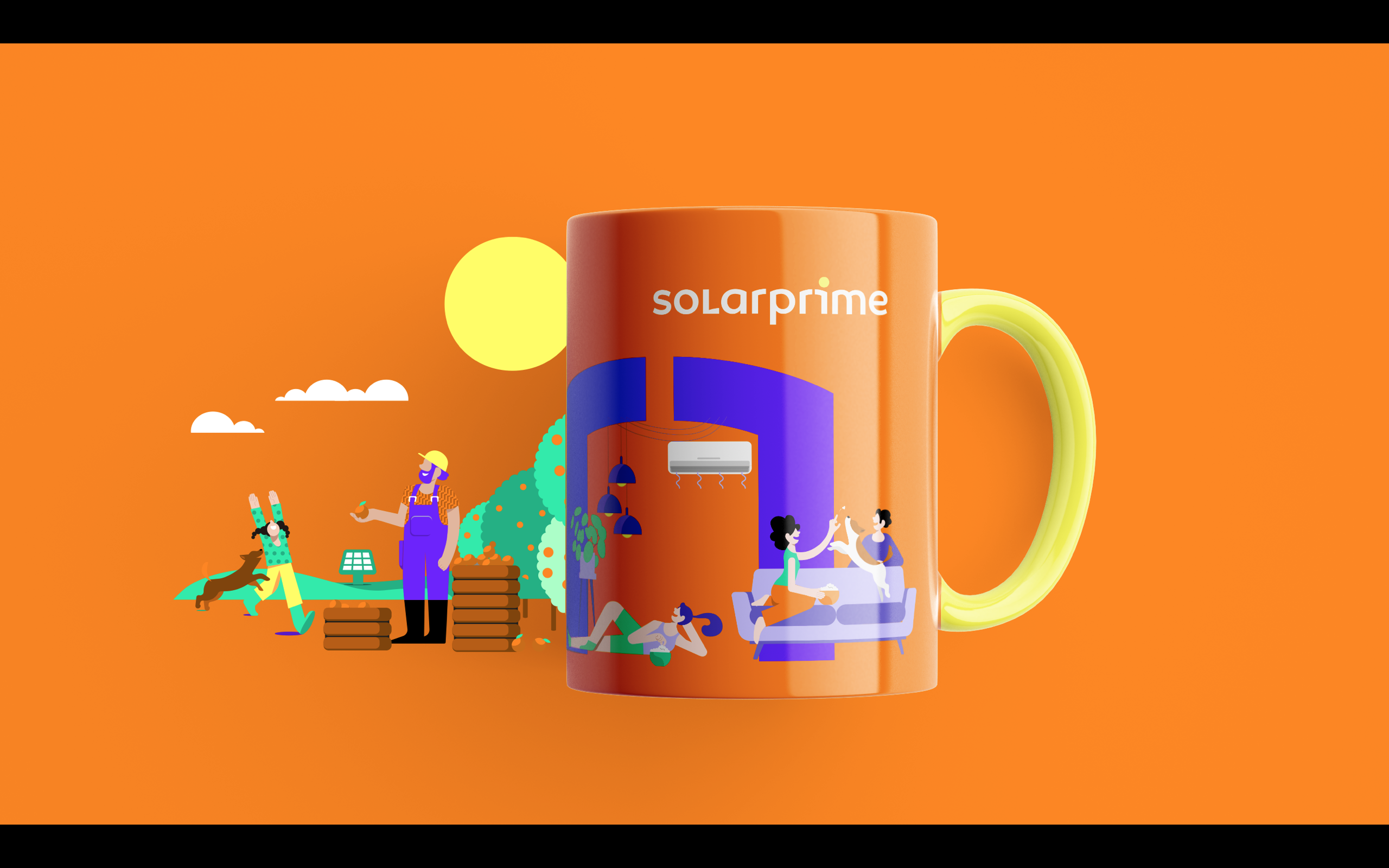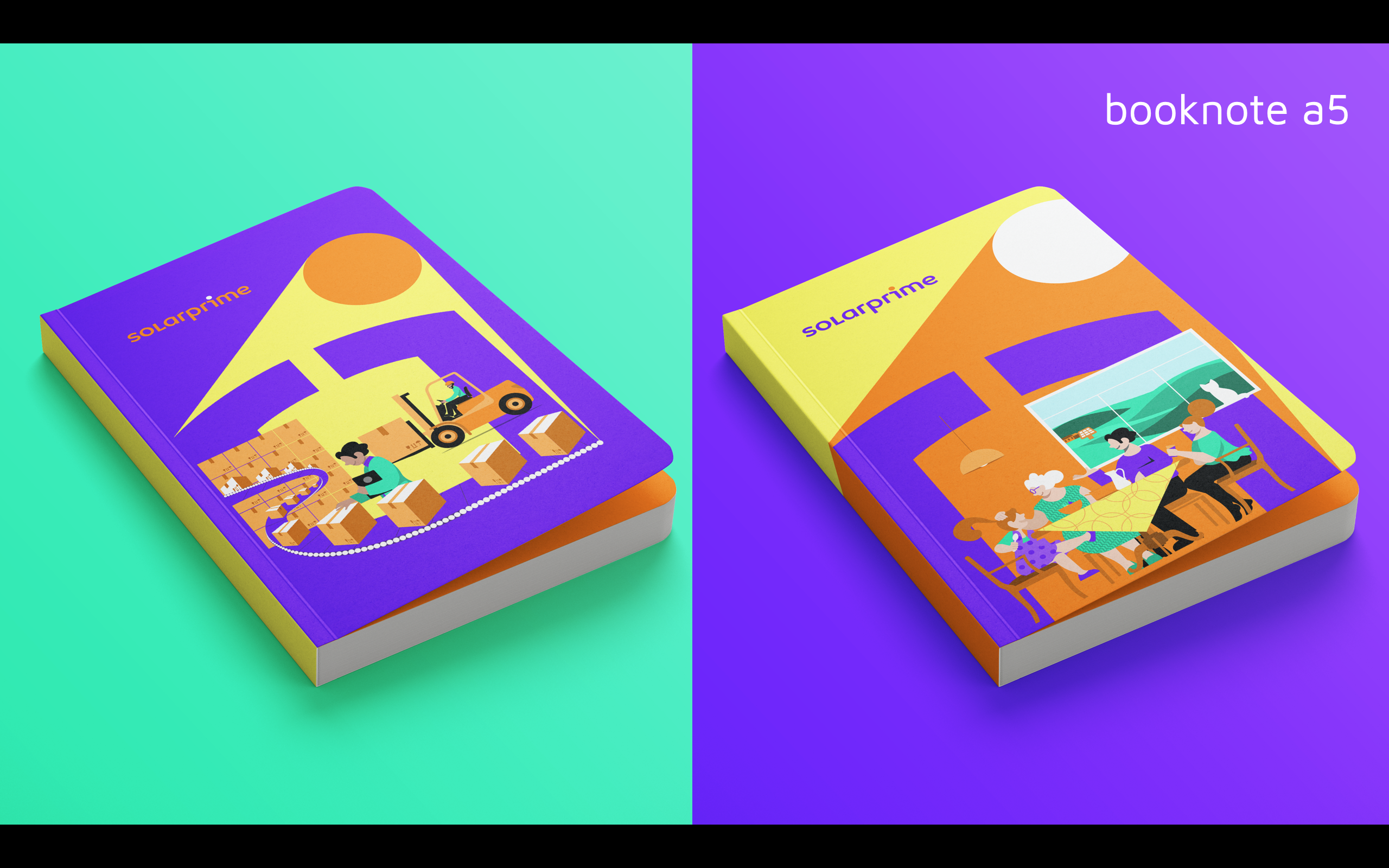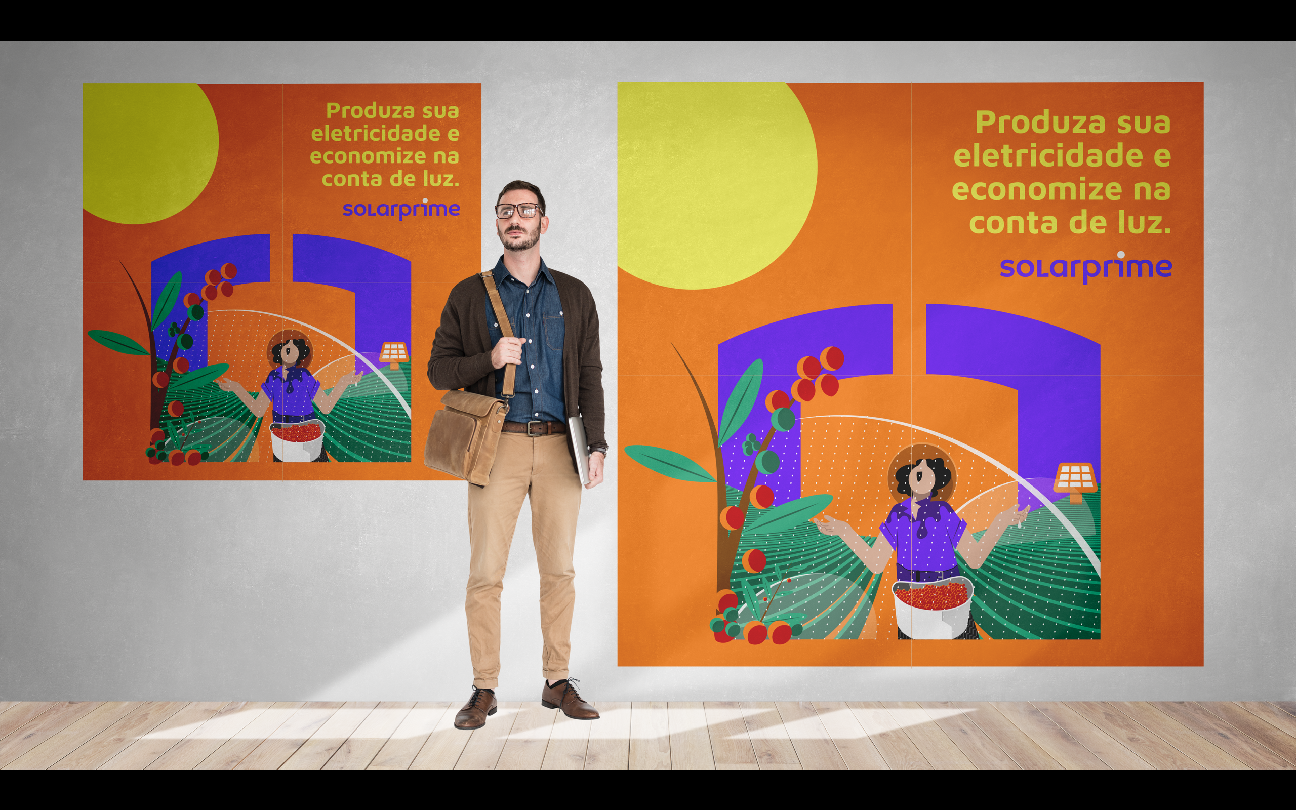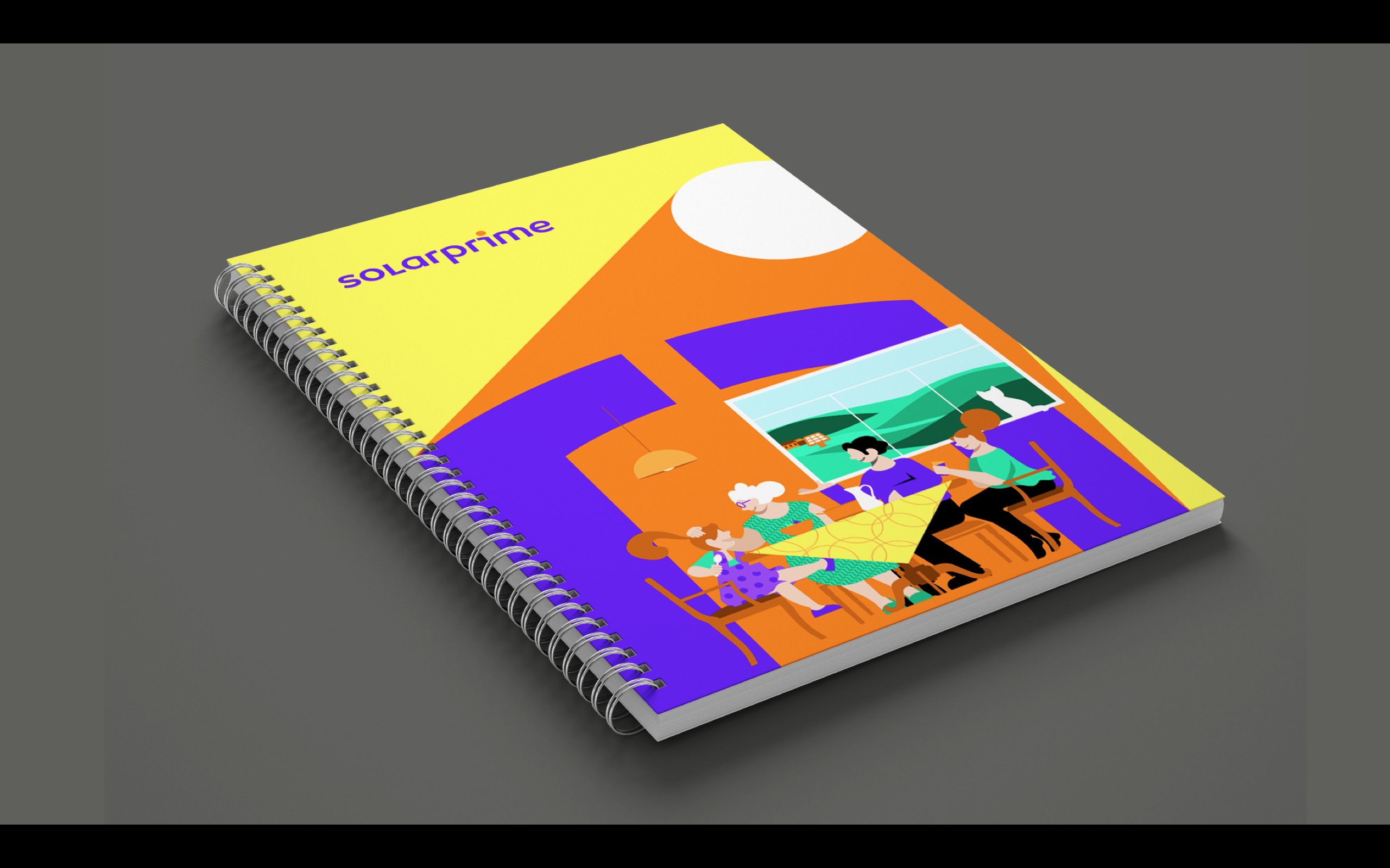 Partindo do branding e da marca criada pelo estúdio Ana Couto, criamos uma série de ilustrações personalizadas e diversas peças de comunicação interna e externa, que foram adotadas na construção da nova identidade visual corporativa da Solarprime.